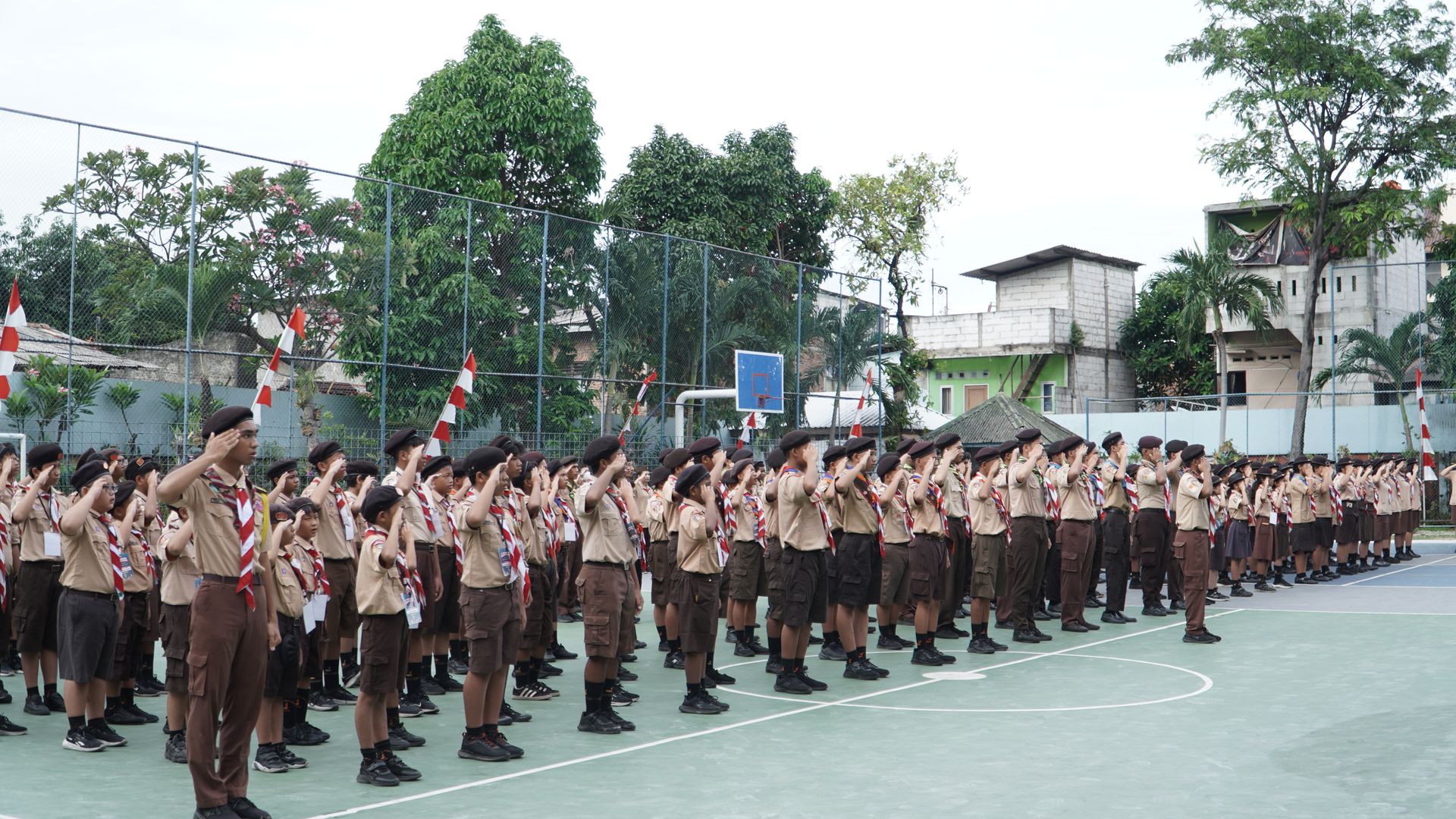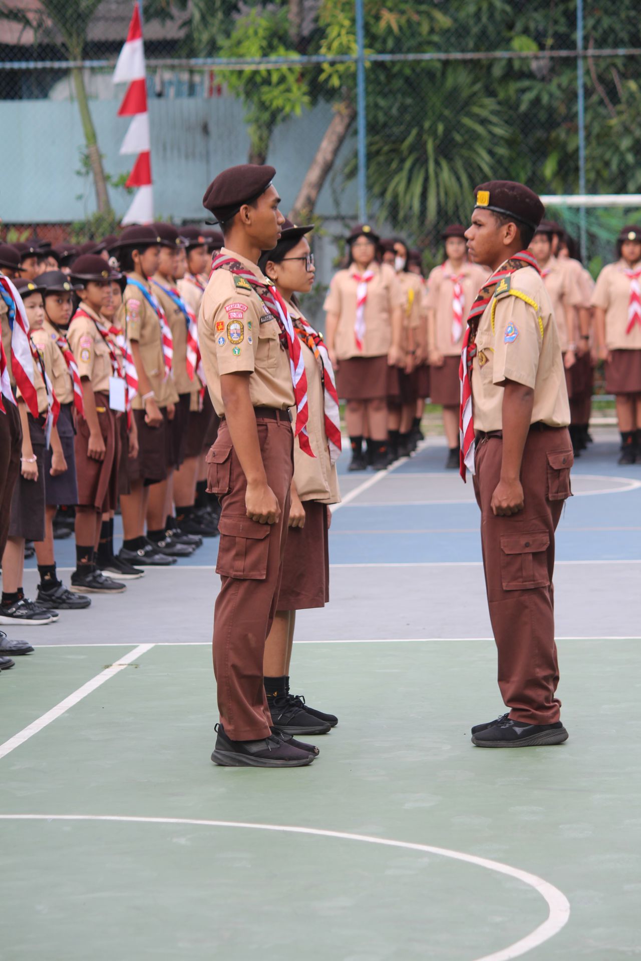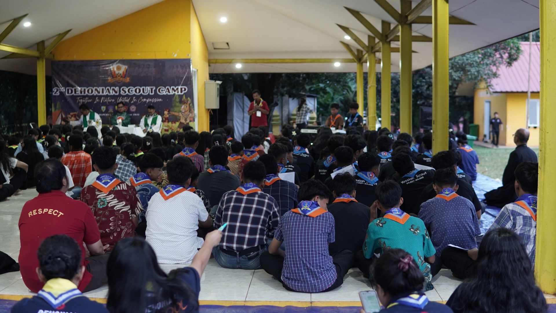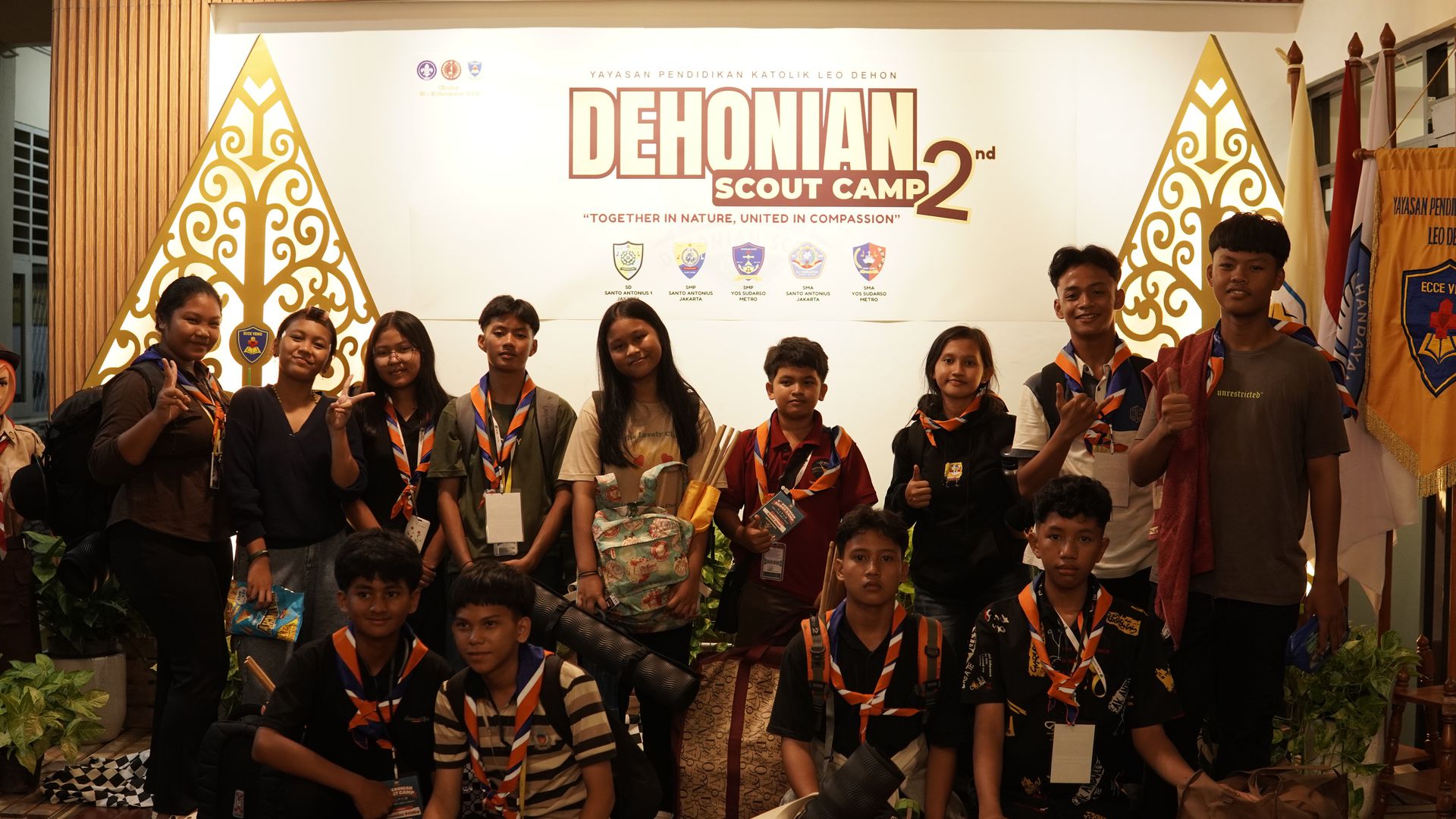 Usai sarapan, peserta dikumpulkan di halaman untuk mengikuti upacara pembukaan di lapangan SMP–SMA Santo Antonius sebelum berangkat menuju Buperta Cibubur. Upacara dipimpin oleh Bruder Tri Antara SCJ selaku ketua pembina, yang menegaskan kembali pentingnya nilai compassion sebagai semangat utama kegiatan hari itu.
