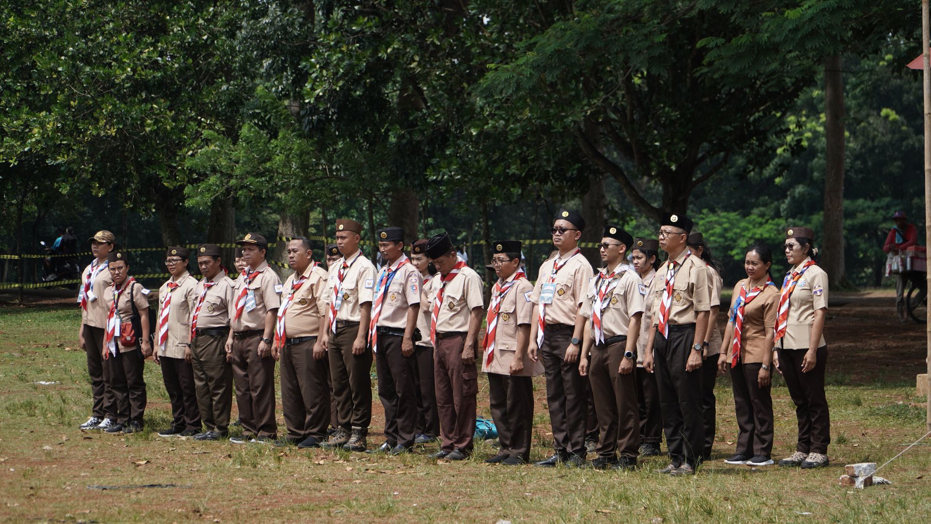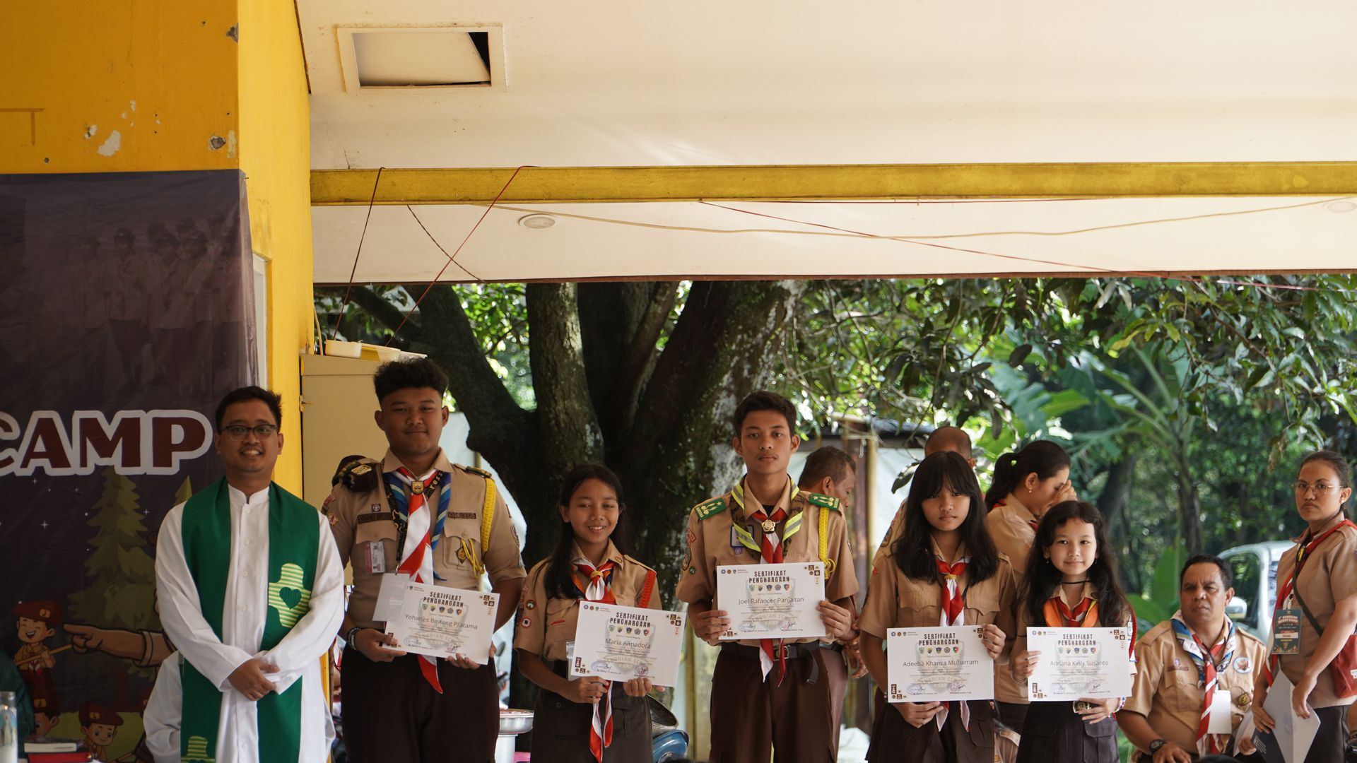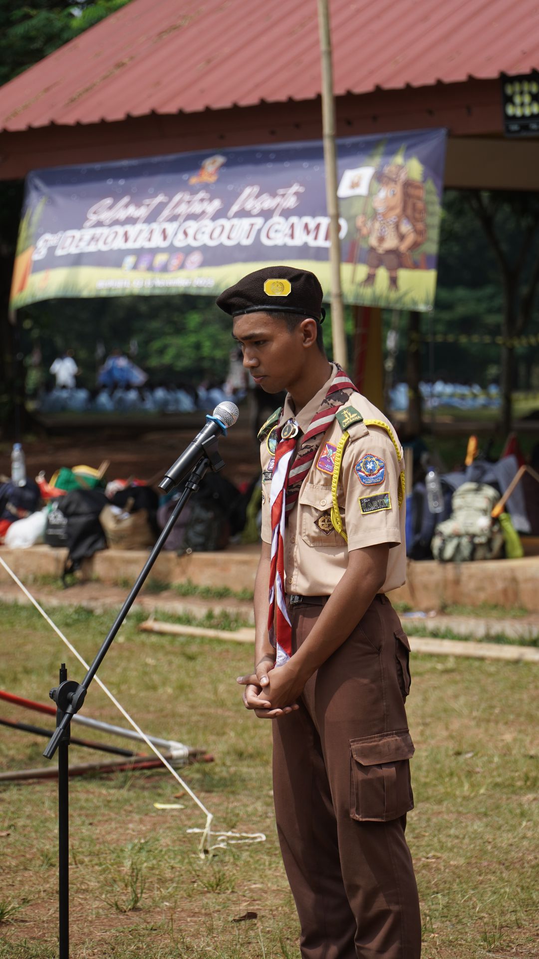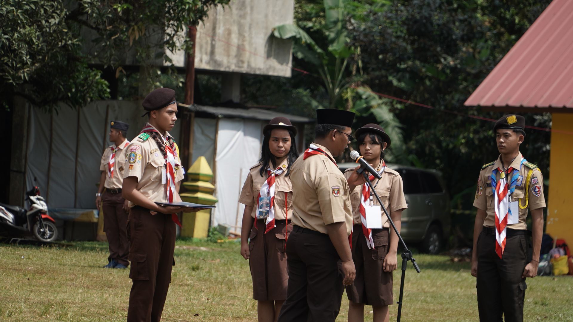 Usai sarapan, peserta dikumpulkan di halaman untuk mengikuti upacara pembukaan di lapangan SMP–SMA Santo Antonius sebelum berangkat menuju Buperta Cibubur. Upacara dipimpin oleh Bruder Tri Antara SCJ selaku ketua pembina, yang menegaskan kembali pentingnya nilai compassion sebagai semangat utama kegiatan hari itu.