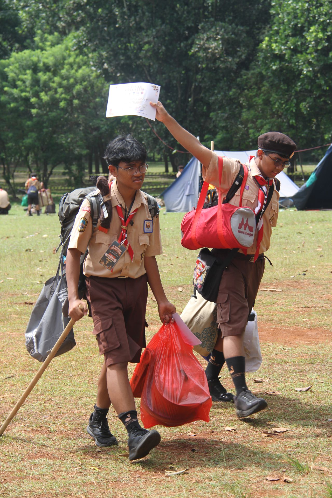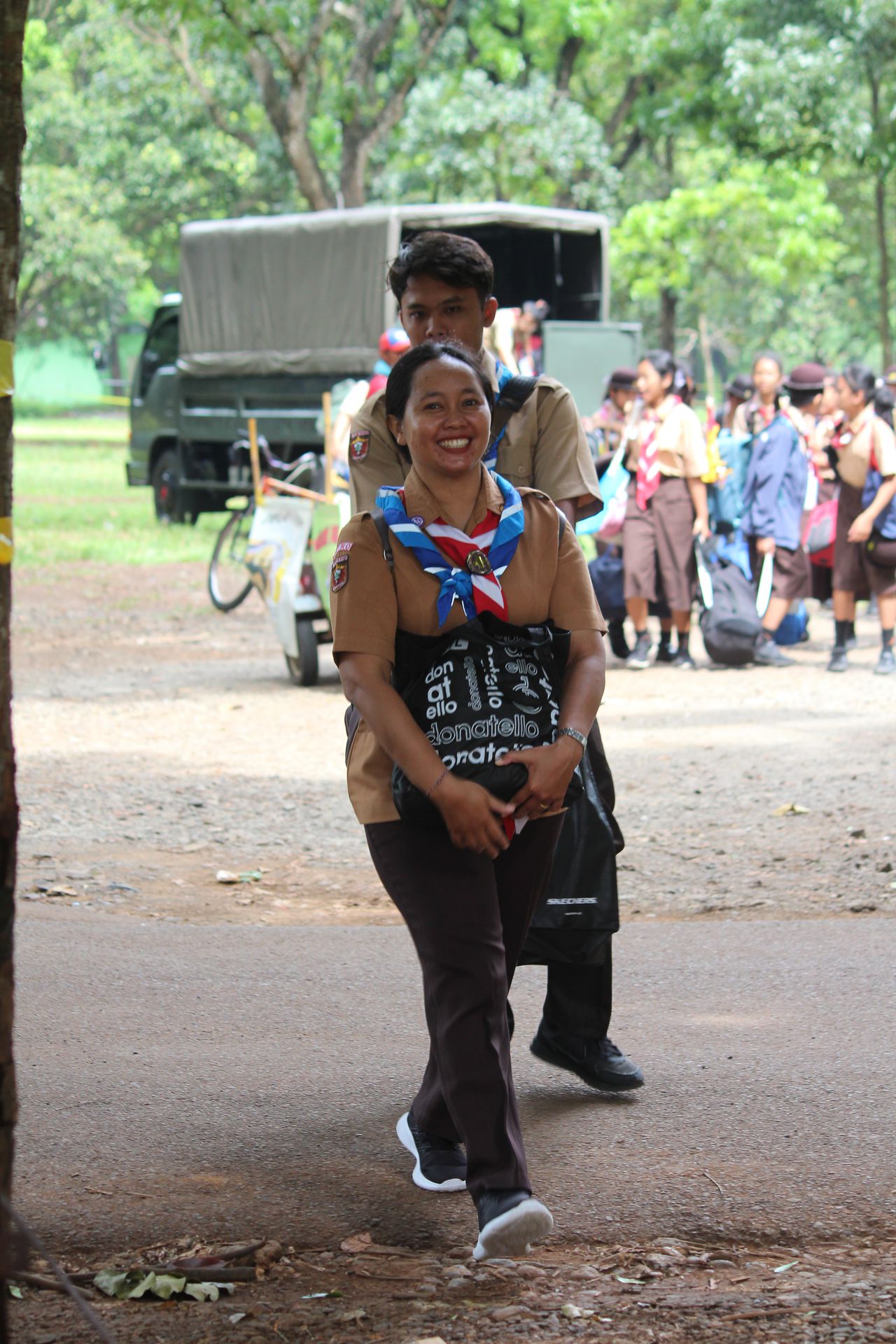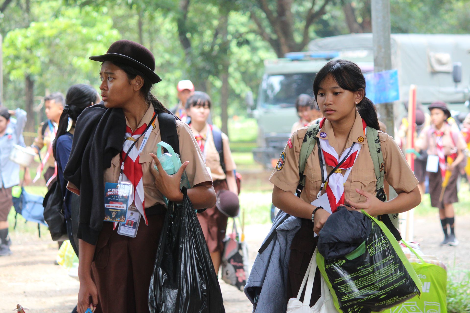 Setelah upacara selesai, para peserta kembali ke area masing-masing untuk mengambil barang. Mereka kemudian memasukkan perlengkapan ke dalam tronton sesuai arahan panitia. Proses keberangkatan diatur berdasarkan pembagian kendaraan sehingga seluruh peserta dapat berangkat dengan tertib menuju Buperta.