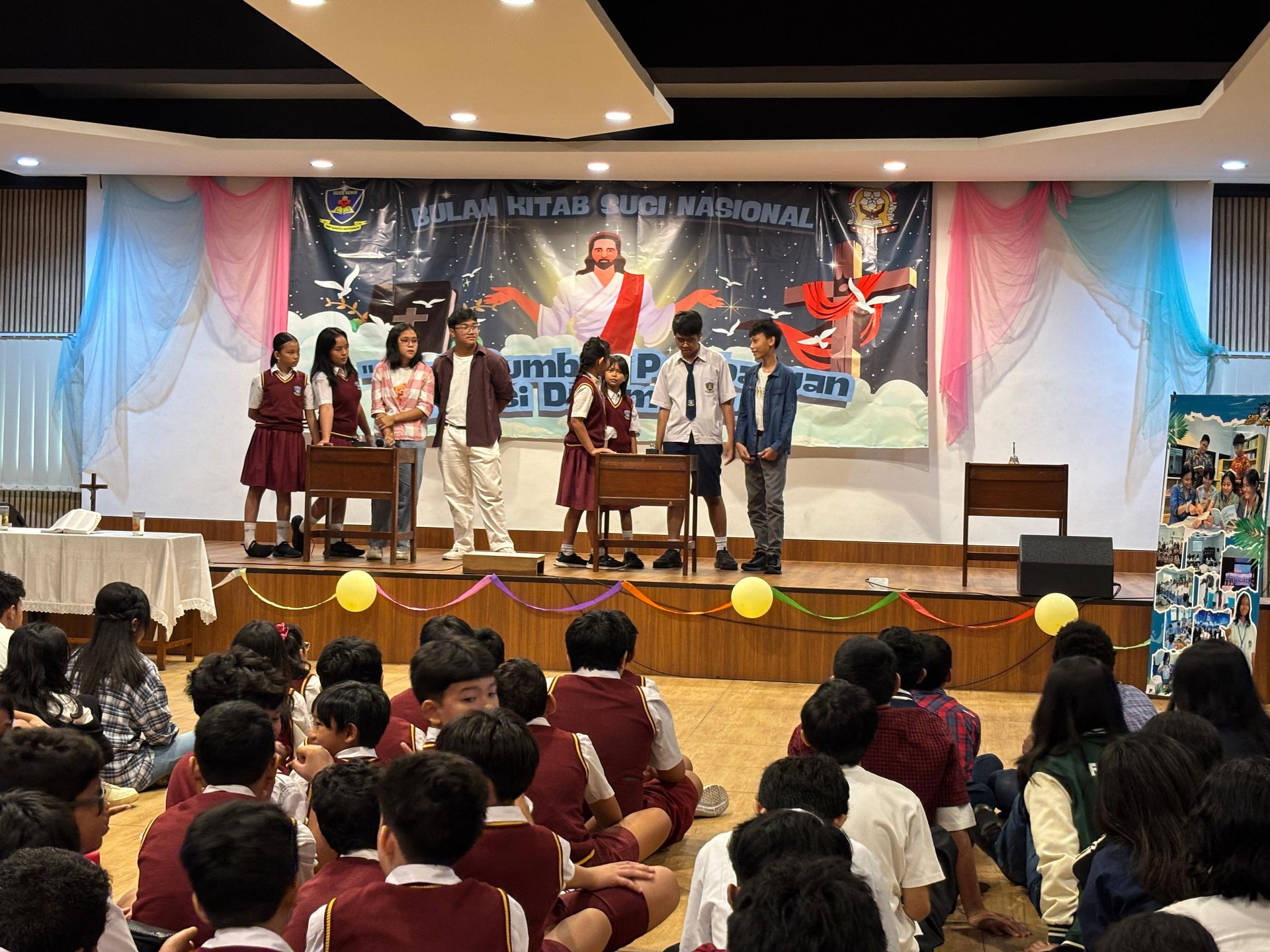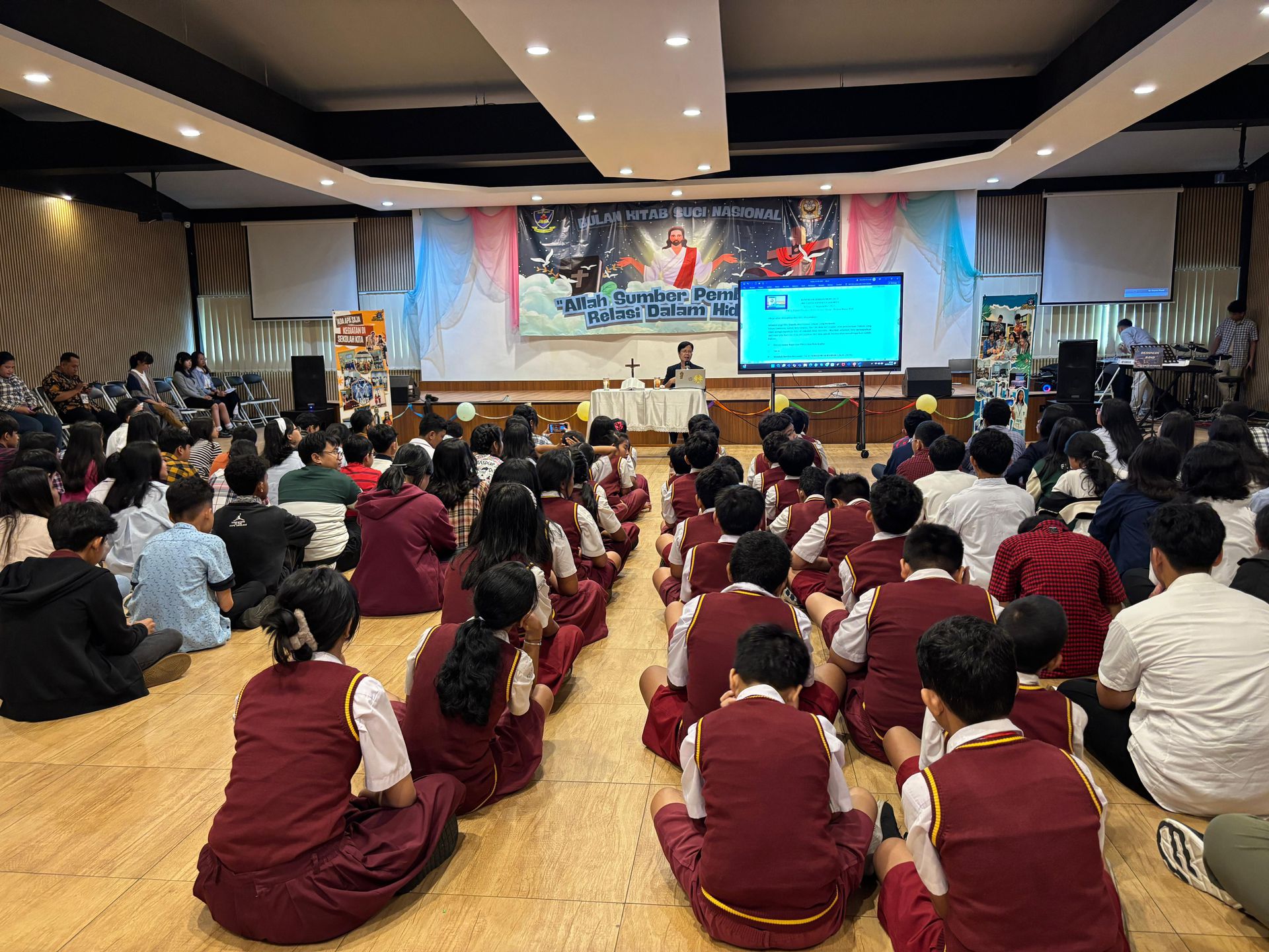 Selasa, tanggal 23 September 2025 aula SMP dan SMA Santo Antonius menjadi tempat pelaksanaan Kegiatan Bulan Kitab Suci Nasional (BKSN). Kegiatan BKSN kali ini dilakukan secara kolaborasi antara siswa-siswi SMP dengan siswa-siswi kelas 6 SD Santo Antonius.